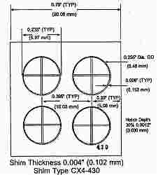 CX4-430 4 つの円形と十字形の切り欠きシム厚さ100μm厚 傷深さシムの厚みの 30%